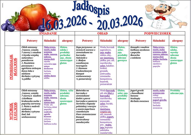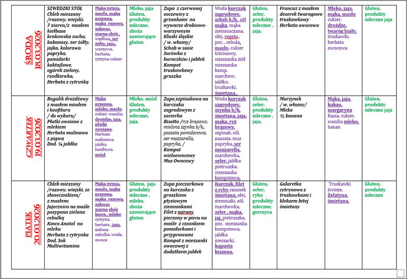 | Numer oznaczenia w jadłospisie | Alergen |