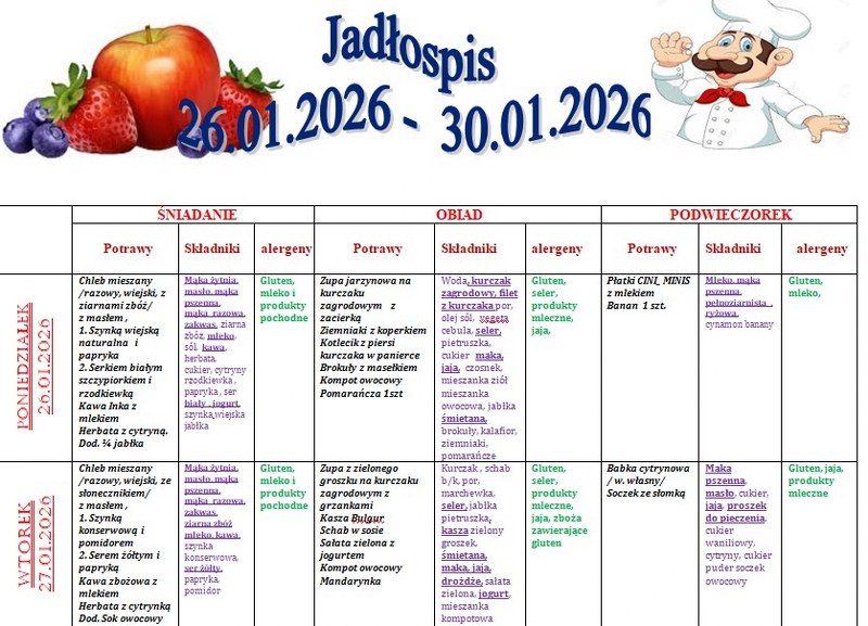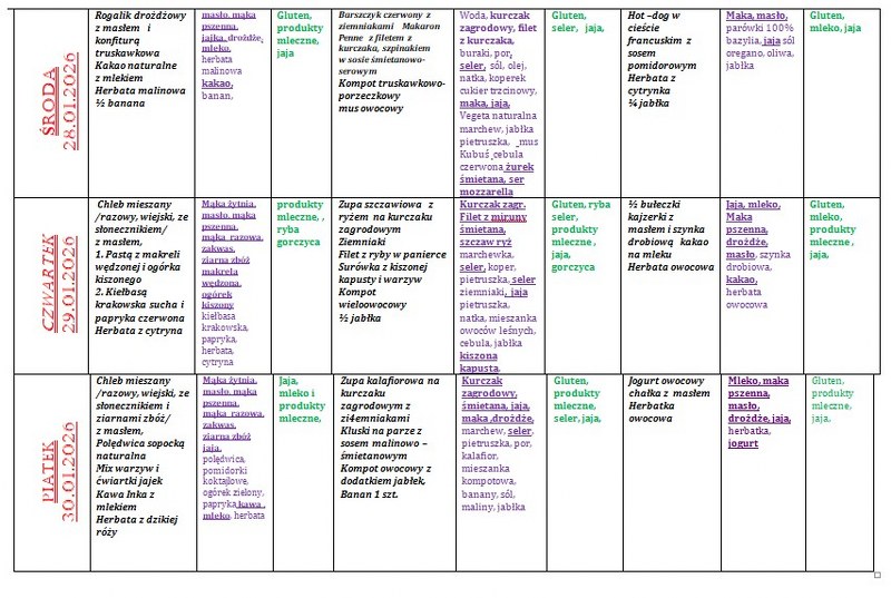 | Numer oznaczenia w jadłospisie | Alergen |